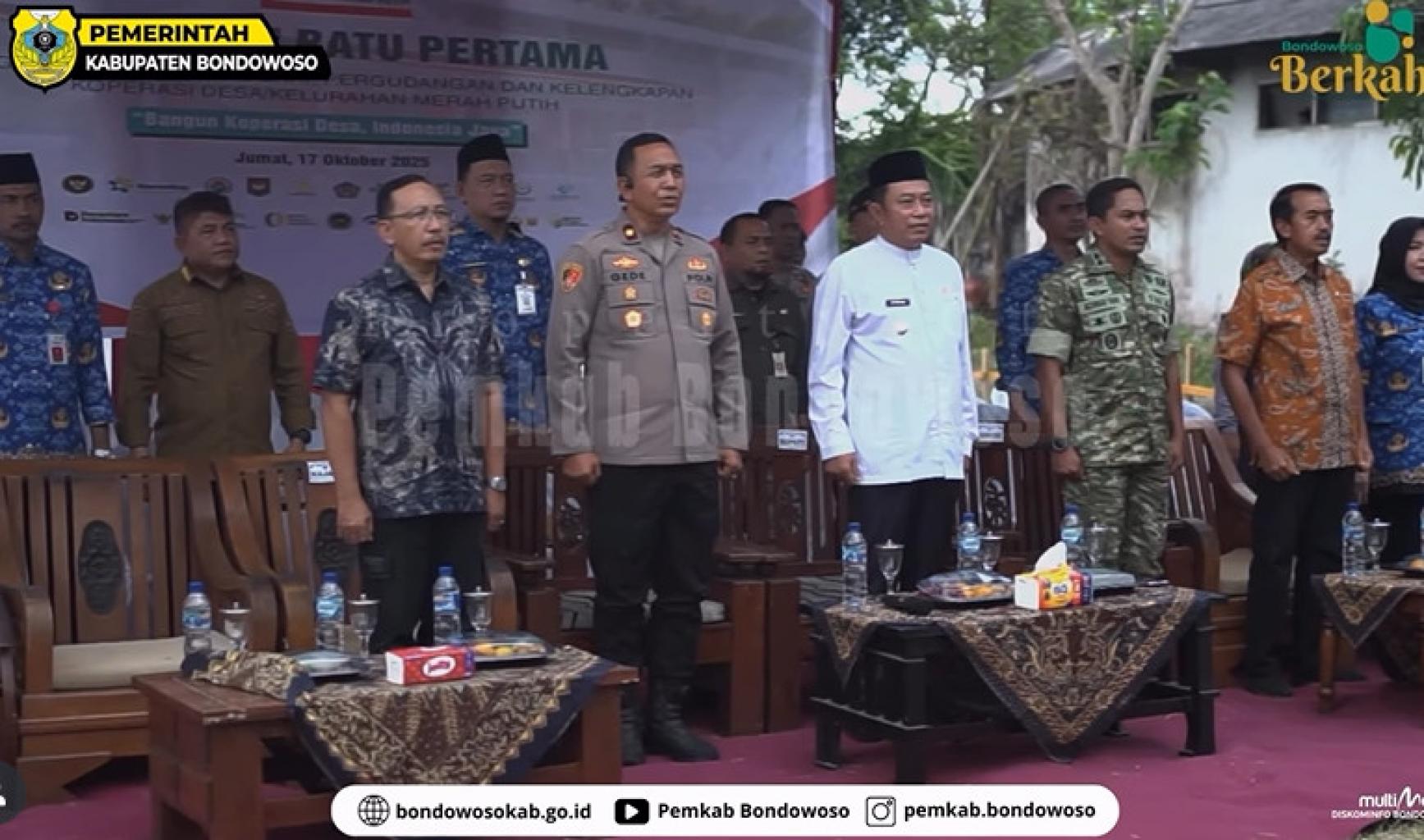 BONDOWOSO - Komitmen Pemerintah Kabupaten Bondowoso dalam memperkuat ekonomi kerakyatan di tingkat desa ditunjukkan dengan dimulainya pembangunan enam gerai Koperasi Desa Merah Putih (KDMP) secara serentak. Peletakan batu pertama ini dilakukan secara virtual bersamaan dengan 800 KDMP di seluruh Indonesia, menandai fase baru program nasional pemberdayaan ekonomi desa. Peletakan batu pertama di Kabupaten Bondowoso dipusatkan di Desa Gebang, Kecamatan Tenggarang, pada Jumat (17/10/2025).