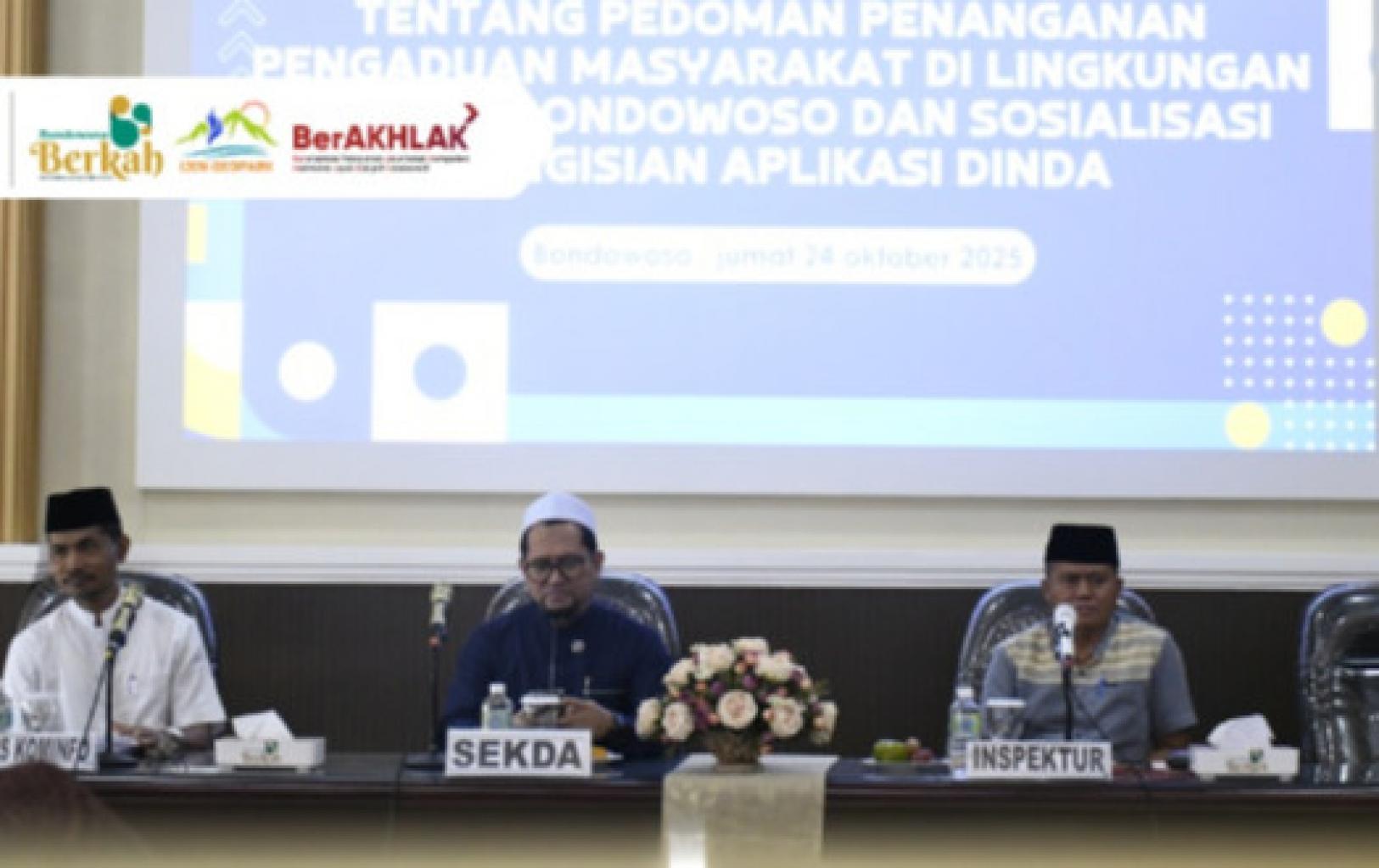 BONDOWOSO - Pemerintah Kabupaten (Pemkab) Bondowoso menunjukkan komitmennya yang teguh dalam memperkuat tata kelola pemerintahan berbasis digital. Inovasi terbaru diwujudkan melalui pengenalan dua aplikasi unggulan yakni KANDA (Kami Melayani Anda Mengawasi) dan DINDA (Data dan Informasi Daerah), yang merupakan tindak lanjut dari Sosialisasi Peraturan Bupati Bondowoso Nomor 24 Tahun 2025 tentang Pedoman Penanganan Pengaduan Masyarakat, di Sabha Bina Praja 1 Setda, Jumat, (24/10/2025).
