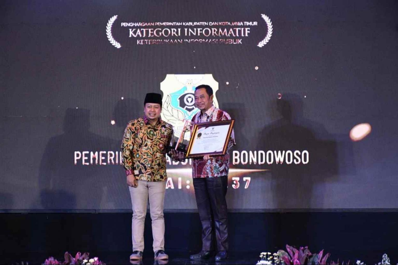 BONDOWOSO - Pemerintah Kabupaten Bondowoso berkomitmen kuat dan berkelanjutan dalam mewujudkan keterbukaan informasi publik. Kerja keras serta upaya peningkatan layanan informasi yang dilakukan Bondowoso membuahkan hasil membanggakan pada gelaran bergengsi Malam Anugerah Keterbukaan Informasi (KI) Award Provinsi Jawa Timur Tahun 2025, yang diselenggarakan oleh Komisi Informasi Provinsi Jawa Timur, yang berlangsung di Hotel Aston Bojonegoro pada Sabtu (29/11/2025).