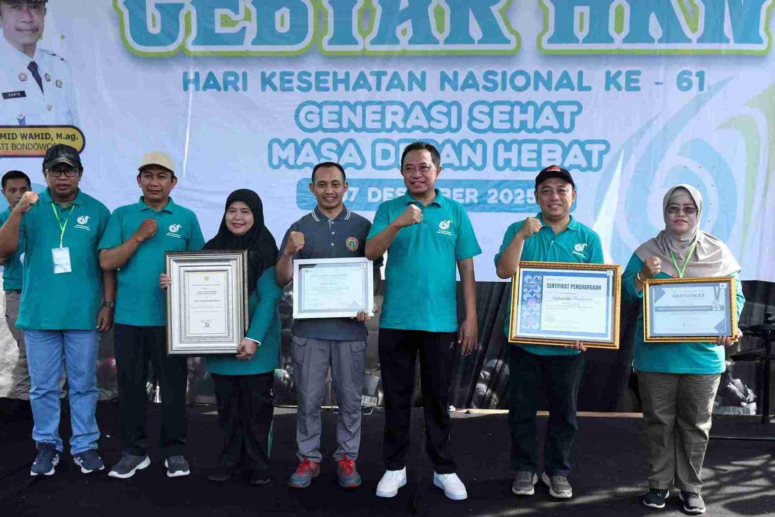 BONDOWOSO - Pemerintah Kabupaten Bondowoso memperingati Hari Kesehatan Nasional (HKN) ke-61 dengan semarak, melalui rangkaian kegiatan Jalan Sehat dan Pelayanan Kesehatan Gratis yang dipusatkan di depan Pendopo Raden Bagus Assra Bondowoso, pada Minggu (07/12/2025).