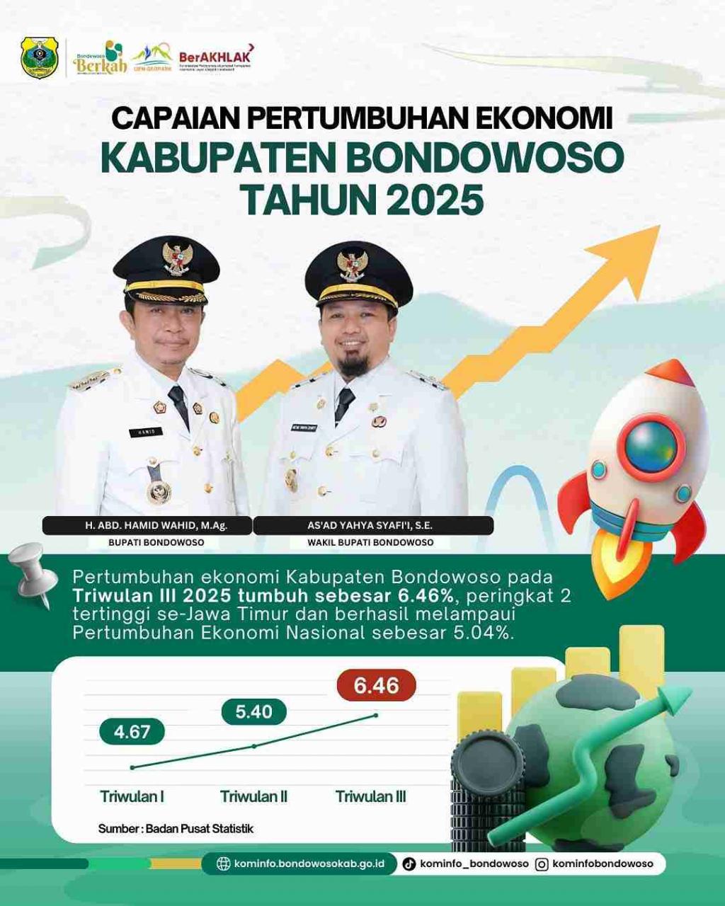 Pemkab Bondowoso fokus pada penguatan ekonomi kerakyatan. Dengan pertumbuhan 6,46%, kita membuktikan bahwa Bondowoso memiliki daya saing yang kuat. Ini adalah sinyal positif bahwa kebijakan yang kita ambil, mulai dari kemudahan perizinan hingga penguatan sektor agribisnis, telah berjalan di jalur yang tepat.