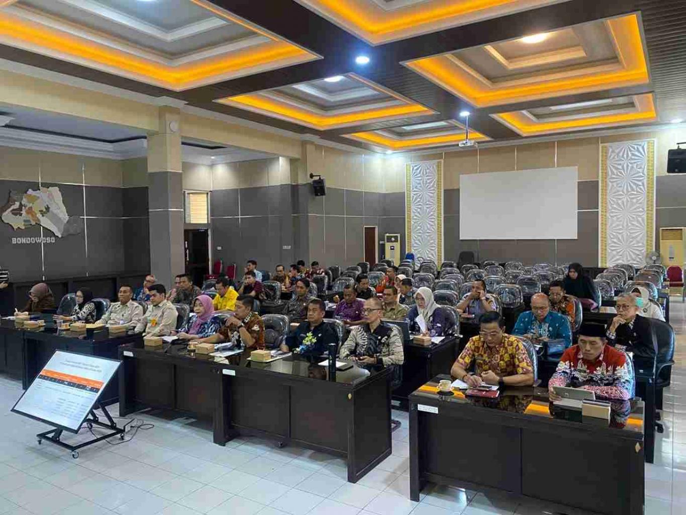 Pemerintah Kabupaten menggelar Rapat Koordinasi Evaluasi Realisasi PAD Triwulan I Tahun 2026 yang dihadiri oleh Sekretaris Daerah, Dr. H. Fathur Rozi, M.Fil.I., dalam rangka melakukan evaluasi terhadap capaian Pendapatan Asli Daerah (PAD) di awal tahun anggaran. di Ruang Sabha Bina Praja Sekretariat Pemkab Bondowoso, Kamis, (02/04/2026).